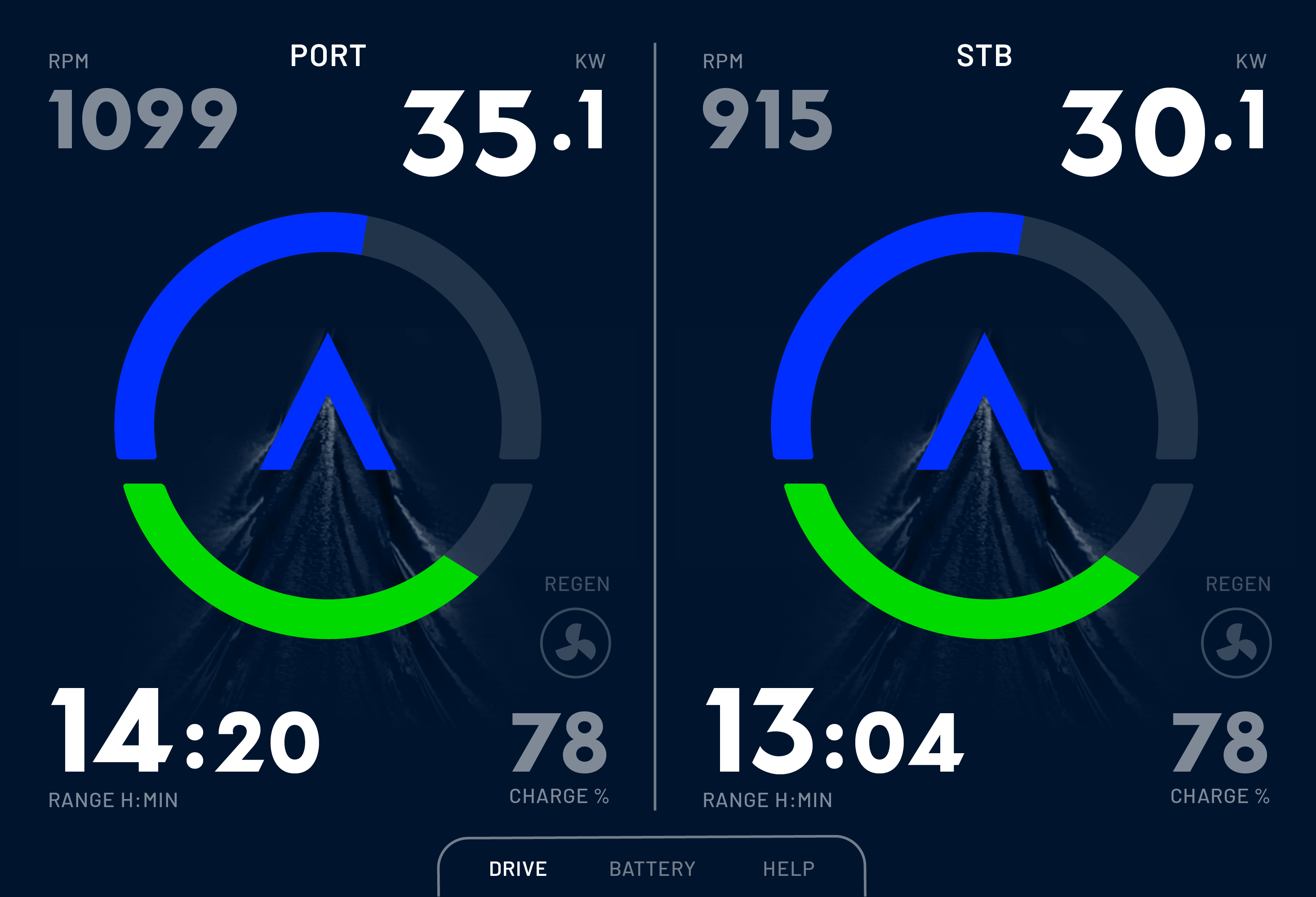 Second, the circumstances at sea can be challenging in terms of visibility. Lastly, the dashboard had to be able to accomodate also configurations with two motors instead of one.